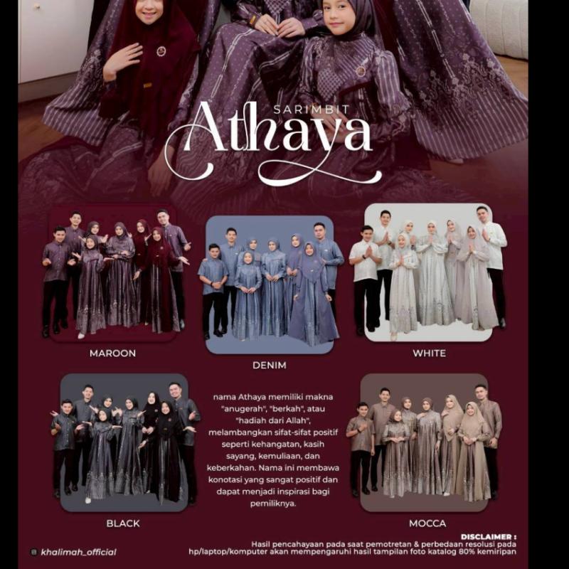 Assalamualaikum..??? Bismillahirrahmanirrahim.... Proudly present SARIMBIT ATHAYA By @Khalimaofficial? Pre order 16 Sept - 29 Sept ? SARIMBIT ATHAYA? Launching Now.. Open Pre Order The Best Collection Ever??.. Sarimbit Ekslusif dari Khalima Official yang siap menemani moment Raya bersama keluarga? Sarimbit dengan desain exclusive yang elegant, dan stylish, menunjang penampilan tetep on point, cantik dan menawan..? Sarimbit Athaya hadir dengan warna-warna terbaru yang fresh dan anggun.. Menggunakan bahan premium sehingga nyaman saat dikenakan ? ?Material : ??? ?? Bahan -- Alora Twill Premium ~ Bahan dengan kualitas premium yang mewah saat dipakai. salah satu Kategori Twill yang berserat diagonal. Bahan ringan, flowy, adem dan menyerap keringat dengan baik. Jenis kain ini tidak menerawang. Printing ekslusif perpaduan logo Khalima dengan motif Baroque classic (ornamen floral & ukiran ala istana, mirip ukiran mewah klasik Eropa yang disusun dengan pola simetris dari atas ke bawah) ? •Detail Khimar athaya-- ??Material khimar sama dengan outer yaitu Ceruti Baby doll bertekstur seperti kulit jeruk yang halus, dengan permukaan bintik-bintik kecil, terasa lembut dan jatuh saat dikenakan, serta tidak mudah kusut dan lentur agar pengguna tetap merasa nyaman meski seharian beraktivitas ??Khimar double layer ??Khimar Soft pad antem dengan jahitan super rapi ??Khimar berbentuk V ??Terdapat akrilik brand dibagian depan khimar ??Size khimar mom 90×120 cm ? •Detail Scarf athaya-- ??Scarf Voal premium (lembut & tegak ketika dipakai) ??Motif scarf perpaduan logo Khalima dengan pola baroque clasic (ornamen floral dan ukiran ala istana mewah klasik Eropa) ??Dengan details tepi lasercut ??Ukuran Scraf (115 × 115 cm) ? • Spesifikasi Dress Mom & Dress Kids Style 1 • ??Model Anggun, simple dan elegant ??Kerah Shanghai ??Resleting depan (busui friendly) ??Terdapat aksen list piping ceruti dibagian dada yang dijahit melintang ??Aksen 5 lipit dibagian depan baju yang menambah kesan mewah ??Lengan puff sleve dengan kombinasi Ceruti yang melingkar namun terbuka di bagian atas ??Saku dibagian samping kanan yang multifungsi ??Lengan manset dengan aksen 2 kancing brand (wudhu friendly), dilengkapi akrilik brand yang mewah ?? Dress kombinasi Ceruti (semi outer) yang dijahit dari kerah hingga bawah, dan menempel dengan gamis, menciptakan kesan glamor dan elegant ? • Spesifikasi Dress Mom Style 2 • ??Menggunakan kerah shanghai ??Busui Friendly - Resleting depan tersembunyi dengan detail hidden placket ??Bagian depan didesain dengan layer ceruty yang dijahit pada aksen ruffle dada, memberikan efek seperti outer yang elegan dan flowy ??Bagian belakang dilengkapi dengan box pleat sehingga memberikan efek jatuh lebih flowy ??Menggunakan lengan puff sleeve yang memberikan kesan anggun & feminin ??Manset lengan lurus (straight cuff) dengan detail kerut pada sambungan lengan ??Sambungan lengan diberi kerut (gathered) sebelum dijahit ke manset, sehingga memberi efek mengembang yang elegan. ??Kombinasi ceruty pada manset dilengkapi aksen akrilik serta 2 kancing brand aktif yang wudhu friendly ??Terdapat saku fungsional disisi kanan gamis ? • Spesifikasi Dress Mom & Dress Kids Style 3 • ??Menggunakan material Alora Twill Premium bermotif perpaduan logo khalima dan motif Baroque Stripes Premium dengan ornamen floral & ukiran ala istana ??Model kerah shanghai ??Busui Friendly - Resleting depan tersembunyi dengan detail hidden placket ??Lengan gamis puff sleve pada bagian bahu memberikan kesan feminim dan anggun ??Wudhu Friendly - didesain dengan lengan manset lurus (straight cuff) bermotif Baroque Stripes Premium, dilengkapi kancing brand serta plat brand di manset ??Terdapat saku fungsional dibagian kanan gamis ??Terdapat list horizontal dengan kombinasi ceruty dibagian dada yang dijahit melintang (Chest Yoke) sehingga memberikan kesan ramping ketika dipakai ??Terdapat 3 lipit vertikal (knife pleats) dibagian kanan kiri gamis yang dimulai dari bawah piping hingga ke bawah, lipit disusun rapi dan simetris yang memberikan kesan cantik dan elegant ??Desain bagian belakang terdapat list horizontal tepat dibawah bahu yang dijahit melintang dari kanan ke kiri ??Terdapat ploi tengah (inverted pleat) dibagian belakang gamis yang memberikan efek flowy ? •Spesifikasi Koko Dad Panjang, Pendek & Koko Kids• ??Model Kerah Kemeja ??Full kancing brand dibagian depan ??Terdapat Saku aktif disebelah kiri ??Terdapat Akrilik brand di bagian atas saku ?? Kancing dibagian lengan pada Koko panjang (wudhu friendly) ? Terdiri dari 5 warna : • Black • Denim • Maroon • Mocca • White ? Kontak Pemesanan Melalui Distributor/Agen terdekat di kotamu ?????? ?Note : - Estimasi produksi ±10-12 minggu setelah close PO - Hasil pencahayaan pada saat pemotretan & perbedaan resolusi pada hp/laptop/komputer akan mempengaruhi hasil tampilan foto katalog 85% kemiripan - Toleransi pada jahitan ±2-3cm - Wajib Deposit 30%
