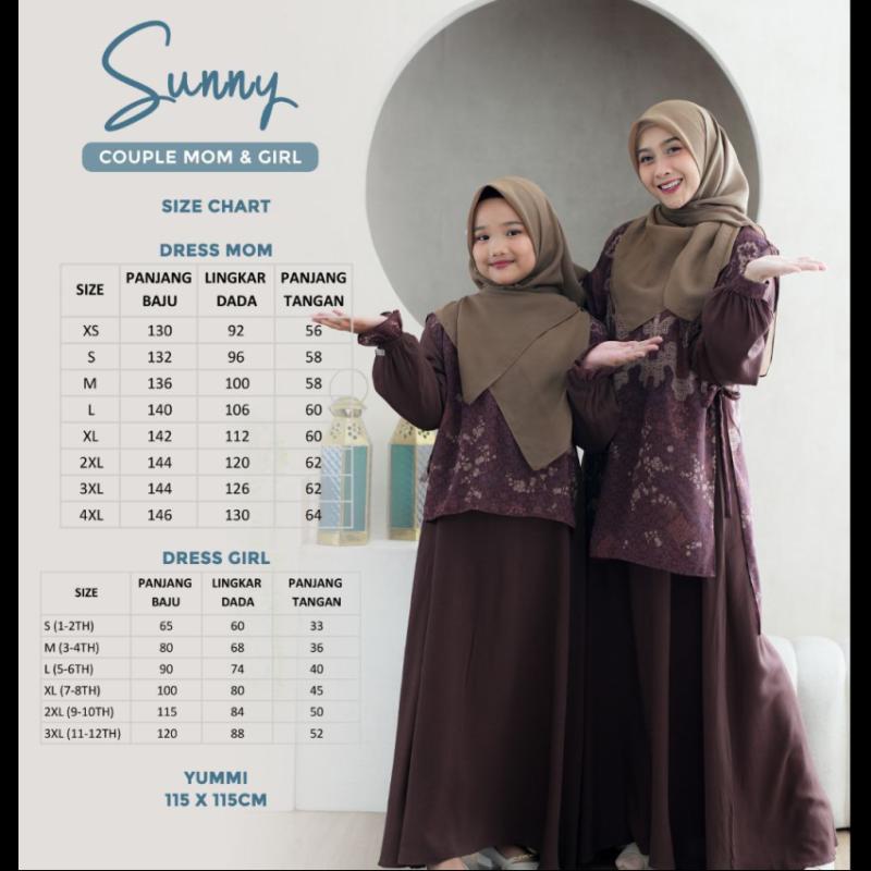 Produk rayon ternyamannya NJA kini hadir dengan desain terbaru, looknya manis, chic & makin stylish ?? Welcome “Sunny Couple Mom & Girl Series” Perpaduan Rayon Premium NJA yang nyesss sejuknya, dengan motif seruty printing etnik. Bikin Sunny Couple ini bukan cuma produk yang cantik dipandang mata, tapi juga super nyaman buat jadi outfit favorit ?? Pilihan Warna Sunny Couple Blush (Yummi square Blush) Mahogany (Yummi square Choco) Navy (Yummi square Navy) Black (Yummi square Black) Timeline PO Open PO 06-16 Maret Max Transfer : 50% 17 Maret 50% 05 Mei Estimasi Ready : Minggu ke 2-3 Mei Spesifikasi Dress Mom ~ Material Rayon mix Seruty Printing  premium original by NJA ~ Kerah shanghai ~ Resleting depan (busui friendly) ~ Manset tangan kancing satu dengan list motif signature Nja ~ Saku kanan ~ Cutting vest zig-zag dibagikan belakang lebih panjang ~ Terdapat tali samping yang bisa di ikat (adjustable) ~ Lebar bawah 2,5 - 2,8m ~ Berat Produk +/- 600gr Spesifikasi Dress Girl ~ Material Rayon mix Seruty Perinting Premium ~ Kerah Shanghai ~ Resleting depan ~ Manset tangan karet dengan motif signature Nja ~ Saku sebelah kanan ~ Cutting vest zig-zag dibagikan belakang lebih panjang ~ Terdapat tali samping yang bisa diikat (adjustable) ~ Berat Produk +/- 400gr Spesifikasi Yummi Square ~ Matt : Fine (lembut, mudah dibentuk, ringan) ~ Tepi dijahit rapih ~ All size +/- 115cm x 115cm ~ Berat Produk 150gr Pricelist Dress Mom Only XS-S IDR 195k M-L IDR 205k XL-2XL IDR 215k 3XL-4XL IDR 225k Dress Girl Only S (1-2th) IDR 135k M (3-4th) IDR 145k L (5-6th) IDR 155k XL (7-8th) IDR 165k 2XL (9-10th) IDR 175k 3XL (11-12th) IDR 185k Yummi Square IDR 39k
