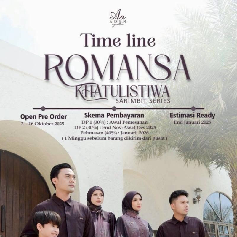 ?*ROMANSA KHATULISTIWA FAMILY SERIES 2026 by @a.d.e.n_signature* ? (Open Pre-Order: 03 - 16 Oktober 2025) Di garis khatulistiwa, selalu ada pertemuan—antara cahaya mentari, hangatnya udara, laut yang jernih, tanah yang makmur dan kehidupan yang tumbuh subur. Dari sinilah sebuah romansa lahir… ? ? ROMANSA KHATULISTIWA Family Series terinspirasi dari keindahan tropis nusantara, dipadukan dengan harmoni warna dan motif yang merekatkan hati. Setiap helai bukan sekadar busana, tapi simbol kebersamaan: - Untuk Ayah yang tegas namun penuh kasih, - Untuk Ibu yang anggun dan mengayomi, - Untuk buah hati yang ceria mewarnai setiap langkah, dan - untuk keluarga yang ingin tampil selaras dalam kehangatan. Seperti garis khatulistiwa yang membentang mempersatukan belahan bumi, ROMANSA KHATULISTIWA hadir untuk menyatukan jiwa dalam balutan busana premium. Bukan sekadar pakaian, melainkan kisah cinta keluarga yang diabadikan dalam satu seri istimewa. ? *MATERIAL PRODUK– ROMANSA KHATULISTIWA* ? ? RIAMOR ? Halus, lembut, dan flowy saat dipakai. ? BELFORD ? Tekstur tegas, halus, nyaman, dan adem. ? CERUTY BABY DOLL ? Butiran seperti pasir, berserat, lembut jatuh, mudah dibentuk. ? AYANA VOAL ? Halus, lembut, ringan, nyaman dipakai. ? *SPESIFIKASI PRODUK – ROMANSA KHATULISTIWA* ? ? *STYLE SIMPLE* ? ?Pilihan sempurna untuk tampil simpel tapi tetap elegan setiap hari! Detail Produk: - *Bahan*: RIAMOR - *Krah*: Shanghai raffle dengan rumah tali - *Desain*: Potongan di bagian depan & yoke di belakang - *Fitur Busui Friendly*: Bukaan ritsleting - *Wudhu Friendly*: Manset dengan satu bukaan kancing - *Lengan*: Balon dengan variasi kerut di puncak & ujung - *Praktis*: Saku di sisi kanan - *Aksen Premium* : Metal tag Aa - *Bonus*: Free Belt untuk tampilan lebih stylish ? *STYLE ELEGANCE*? ? Style Elegant hadir dengan sentuhan anggun dan timeless, membuat tampilan semakin manis sekaligus nyaman dipakai di berbagai kesempatan. Detail Produk: - *Bahan:* RIAMOR (lembut, halus, flowy) - *Krah:* Shanghai dengan variasi raffle - *Desain Dress:* Potongan depan + bukaan ritsleting (busui friendly) - *Lengan:* Balon dengan kerut di manset - *Manset:* Bukaan kancing (wudhu friendly) - *Praktis*:* Saku di sisi kanan - *Aksen Premium* : Metal tag Aa ? *STYLE LUXURY* ? Style Luxury diciptakan untuk kamu yang ingin tampil maksimal, anggun, berkelas, sekaligus nyaman dalam setiap momen istimewa. Detail Produk: - *Bahan Dress:* RIAMOR (lembut, halus, flowy) - *Krah:* Shanghai dengan variasi raffle - *Desain Dress:* Potongan depan dengan bukaan ritsleting (busui friendly) - *Lengan:* Balon dengan kerut di manset - *Manset:* Bukaan kancing (wudhu friendly) - *Praktis*:* Saku di sisi kanan - *Aksen Premium* : Metal tag Aa - *Dilengkap dengan Outer Eksklusif:* - Bahan Ceruty Baby Doll motif cantik & elegan - Bukaan depan dengan kancing sengkelit - Lubang tali di samping outer - Bonus Free Belt (untuk pembelian inner + outer / outer only) ? *DETAIL DRESS KIDS (PANJANG & PENDEK)* ? ? Dress Kids yang nyaman, stylish, dan cocok untuk setiap momen si kecil, dari bermain hingga acara spesial. Detail Produk: - *Bahan:* RIAMOR (halus, lembut, flowy) - *Pilihan Lengan:* Panjang & pendek - *Garis Leher:* Bulat - *Bukaan:* Ritsleting di belakang dress (busui/wudhu friendly) - *Desain:* Potongan depan dengan variasi kerut di puncak lengan dan potongan depan - *Terdapat sedikit perbedaan motif pada setiap dress kids karena penempatan cutting kain yang berbeda.* - *Lengan:* Balon - *Manset (khusus lengan panjang):* Bukaan kancing - *Praktis*: Saku di sisi kanan - *Aksen Premium* : Metal tag Aa ? *ALL KOKO* ? ? Pilihan koko yang lengkap hadir untuk keluarga yang ingin tampil kompak, stylish, dan nyaman di setiap kesempatan. Detail Produk: - *Bahan:* Belford (tegas, halus, nyaman, adem) - *Pilihan Koko:* Lengan Panjang & pendek untuk Koko Dad & Koko Kids - *Krah:* Kemeja - *Desain Belakang:* Yoke lipit hadap - *Bukaan:* Kancing terutup - *Praktis*: Saku di sisi kiri - *Manset (khusus lengan panjang):* Bukaan kancing - *Aksen Premium* : Metal tag Aa ? *SCARF STANDAR & KIDS* ? ? Scarf Romansa Khatulistiwa hadir untuk menambah sentuhan manis dan elegan pada setiap tampilan, baik untuk orang mom maupun si kecil. Detail Produk: - *Bahan:* Ayana Voal - *Motif:* Pattern asli by @a.d.e.n_signature - *Tepi:* Laser cut rapi - *Ukuran:* SCARF STANDAR ? 115 x 115 cm SCARF KIDS ? 95 x 95 cm - *Packaging:* Scarf only ? Hard box Set scarf ? Goodiebag Aden Signature (menyatu dengan dress) ? *DETAIL UMUM - ROMANSA KHATULISTIWA* ? ? 5 available colors == >> ?COCONUT ?EQUATOR ??ISLAND ?MERIDIAN ?TROPICAL ?? Item TerjuaL>> available on @aden_katalog_signature ? Size Chart == >> available on @aden_katalog_signature ?? Berat Produk == >> available on @aden_katalog_signature ?Packaging : 1. Goodibag (All Dress termasuk set scarf) 2. Hard Box (Scarf Only) #sarimbitromansakhatulistiwa #romansakhatulistiwa #romansabyadensignature #sarimbitelegan #elegandalamromansa #sarimbitadensignature #ingatlebaraningatadenhijab #lebaranbersamaaden #sarimbit2026 #famsetaden